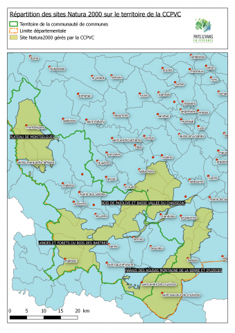 Télécharger la carte des sites Natura 2000 géré par la communauté de communes "Pays des Vans en Cévennes"